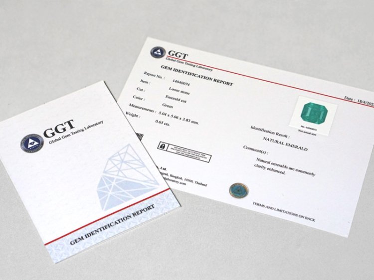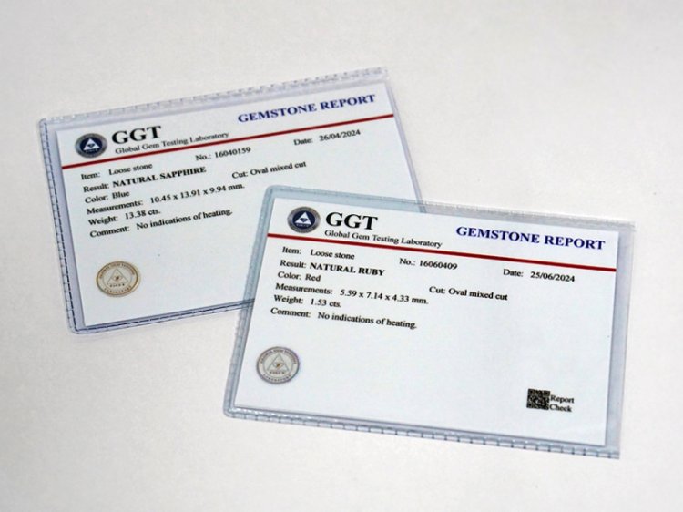 - ระบุผลการวิเคราะห์ และคำอธิบายสั้นๆ โดยอัญมณีจะอยู่ในซองพลาสติกปิดผนึก